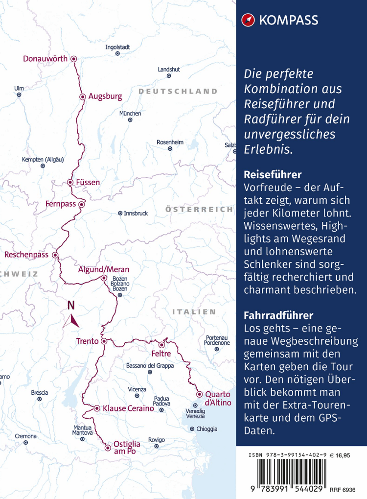 Fietsgids 6936 Via Claudia Augusta (753 km) - Kompass