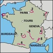 Paris, Strasbourg, Geneva, Arles, Brest, Toulouse.