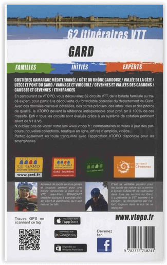 Franse omschrijving: En parcourant ce VTOPO, vous découvrirez 62 circuits VTT, de la balade familiale au tracé expert, pour partir à la découverte du formidable potentiel du département du Gard. Nouvelle édition et nouveau parcours ! Avec des données claires et détaillées, des cartes précises, des infos utiles et des photos de qualité, le VTOPO devient la référence indispensable pour profiter à 100% de ces massifs. Enfin tous les circuits sont évalués grâce à un système de cotation pertinent allant de V1 à V6.