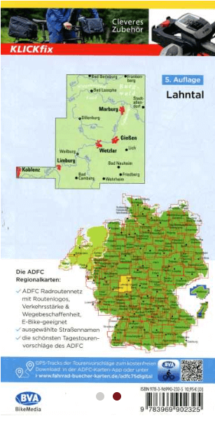 Productomschrijving: Gedetailleerde fietskaart van populaire regio's in Duitsland: Lahntal.