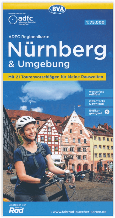 Productomschrijving: Gedetailleerde fietskaart van populaire regio's in Duitsland: Nürnberg & omgeving.