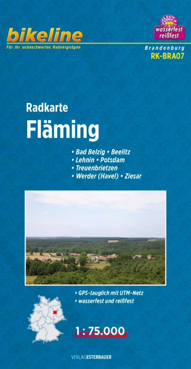 Fietskaart BRA07 - Radkarte Fläming - Bikeline Omvat: Bad Belzig, Beelitz, Lehnin, Potsdam, Treuenbrietzen, Werder (Havel) & Ziesar Productomschrinving: Met deze bikeline® fietskaart ove...