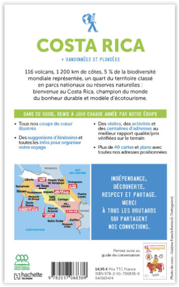 Partir à la recherche du quetzal, oiseau mythique d’Amérique centrale… Le Routard Costa Rica c’est aussi une première partie haute en couleur avec des cartes et des photos, pour découvrir plus facilement le pays et repérer nos coups de cœur; des adresses souvent introuvables ailleurs, des visites culturelles originales en dehors des sentiers battus, des infos remises à jour chaque année, des cartes et plans détaillés.