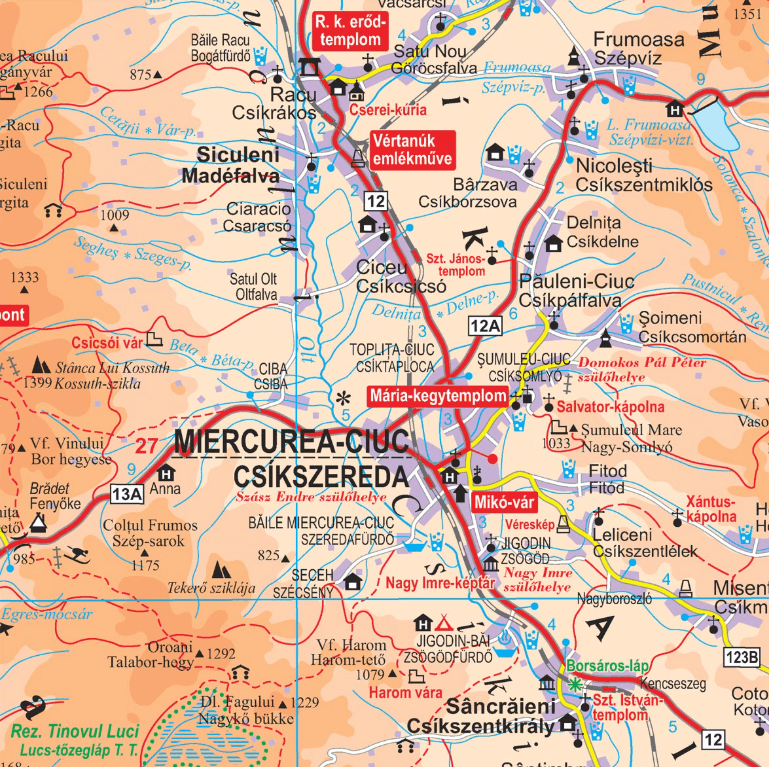 Productomschrijving: Het oostelijke deel van Transsylvanië op een gedetailleerde, geïndexeerde wegenkaart op 1:200.000, met opvallende hoogtekleuren en punthoogtes die een uitstekende presentatie geven van de topografie van deze fascinerende regio. Er worden veel namen van bergketens gegeven en nationale parken of beschermde gebieden zijn gemarkeerd.