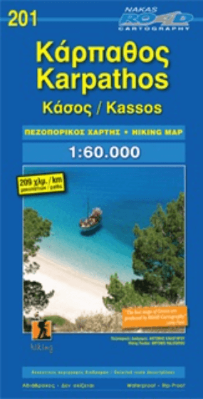 Productomschrijving: Een algemene, gedetailleerde wandelkaart van het eiland Karpathos, dat deel uitmaakt van de eilandengroep van de Dodekanessos, zoals Kasos, die behoort tot Griekenland en is het meest zuidelijke eilanden van de eilandengroep Dodekanessos. De kaart omvat alle nodige toeristische informatie zoa shotels e.a. verblijfplaatsen.