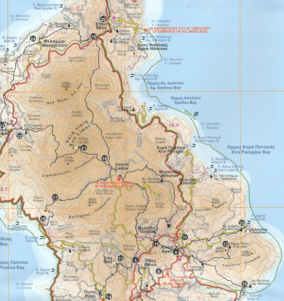 Regionale Wandelkaart Griekenland 1:45.000 - 201 > 221