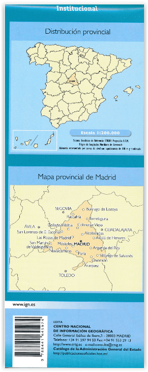 Provinciale Wegenkaart / Mapa Provinciales Madrid - CNIG Productomschrijving: Algemene wegenkaart van de provincie .. in de regio .. in Spanje. De kaart omvat de Provincies/Regio: Madrid,...