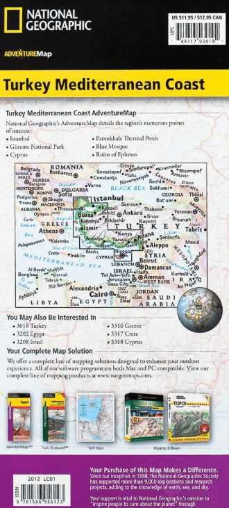 Wegenkaart Turkije & Mediterraanse kust - Nat Geo Productomschrijving: National Geographic's Turkey, Mediterranean Coast Adventure Map is designed to meet the needs of adventure travelers w...