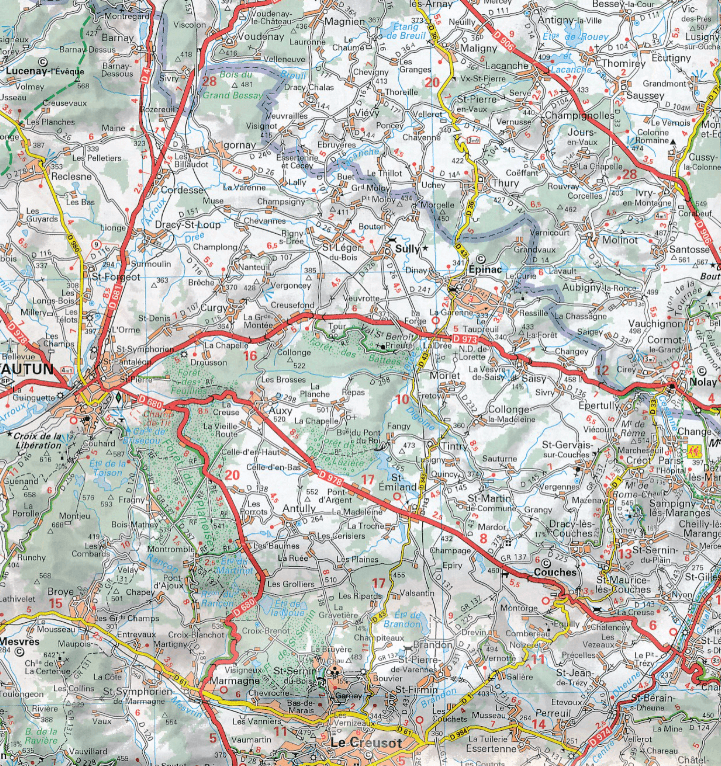 - Landkaart Wegenkaart 320 Côte-d'Or & Saône-et-Loire - Michelin
