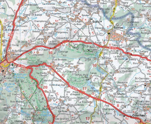 - Landkaart Wegenkaart 320 Côte-d'Or & Saône-et-Loire - Michelin