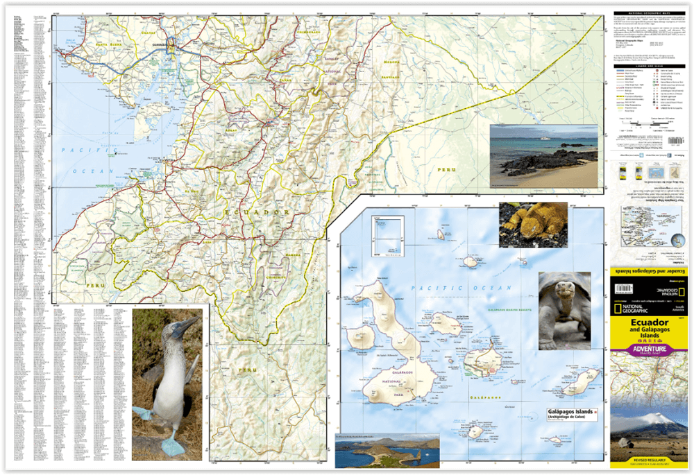 Wegenkaart Ecuador & Galapagos - Nat Geo Productomschrijving: National Geographic's Ecuador and Galapagos Islands Adventure Map, with its comprehensive information, is uniquely designed for...