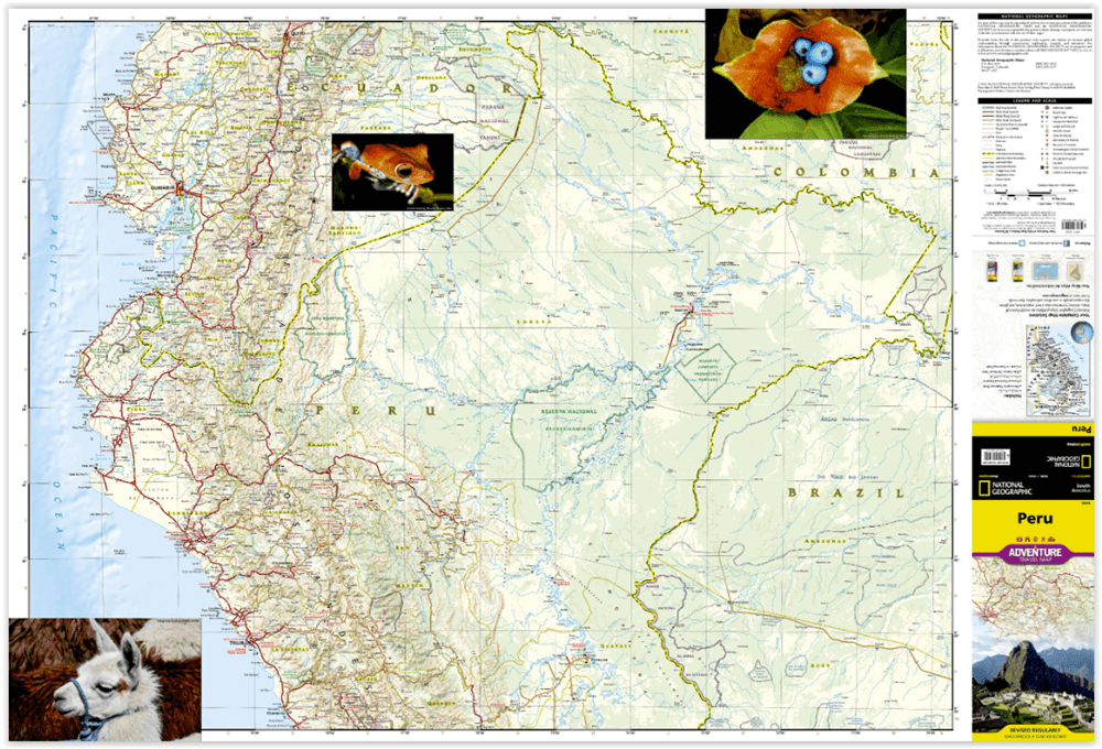Wegenkaart Adventure map Peru - Nat Geo Productomschrijving: National Geographic's Peru Adventure Map provides global travelers with the perfect combination of detail and perspective. Hundre...