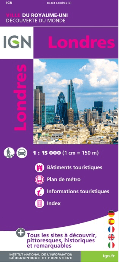 Productomschrijving: Deze wegenkaart omvat het volledige London (England) op schaal 1:15.000 (1 cm = 150 m), hij bevat alle touristische wegen als ook Nationale parken. De kaart behoort tot de reeks van de Pays, Découverte du Monde van IGN