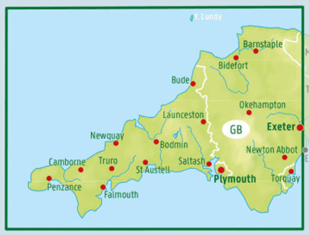 Deze recto/verso gedetailleerde landkaart van Cornwall is zeer geschikt voor het plannen en voor het rondtrekken door het land.