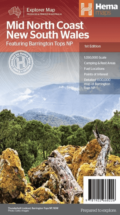 Explorer Map Mid North Coast, New South Wales - Hema Productomschrijving: A regional map of the Mid North Coast of New South Wales (1:350,000) that ranges from Northern Newcastle, west to M...