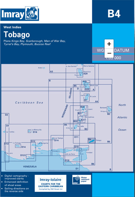 Imray-Iolaire-kaarten voor "Tobago, kleine Antillen, Bovenwindse eilanden" worden algemeen erkend als de beste kaarten voor zeilers. Ze combineren de nieuwste officiële digitale metingen met informatie uit de eerste hand die is verzameld tijdens meer dan 60 jaar onderzoek door Don Street Jr en zijn uitgebreide netwerk van medewerkers. Net als alle Imray-kaarten zijn ze gedrukt op waterbestendig Pretex-papier voor extra duurzaamheid en bevatten ze veel ankerplaatsen, voorzieningen en inhammen die niet op officiële kaarten staan. Deze editie bevat de nieuwste officiële digitale gegevens in combinatie met aanvullende informatie uit het netwerk van Imray, waardoor deze kaart ideaal is voor kleine vaartuigen. De kaart bevat de nieuwste officiële bathymetrische metingen. De kaart is volledig geactualiseerd.
