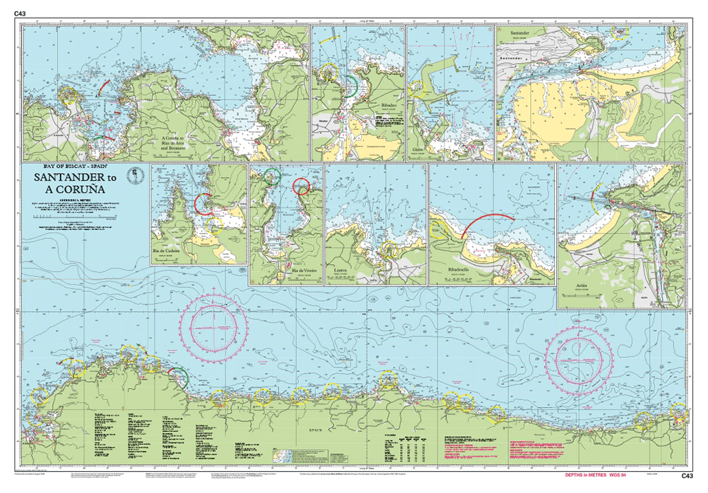 Passage kaart C43 Santander Cantabrië > A Coruña Galicië Spanje