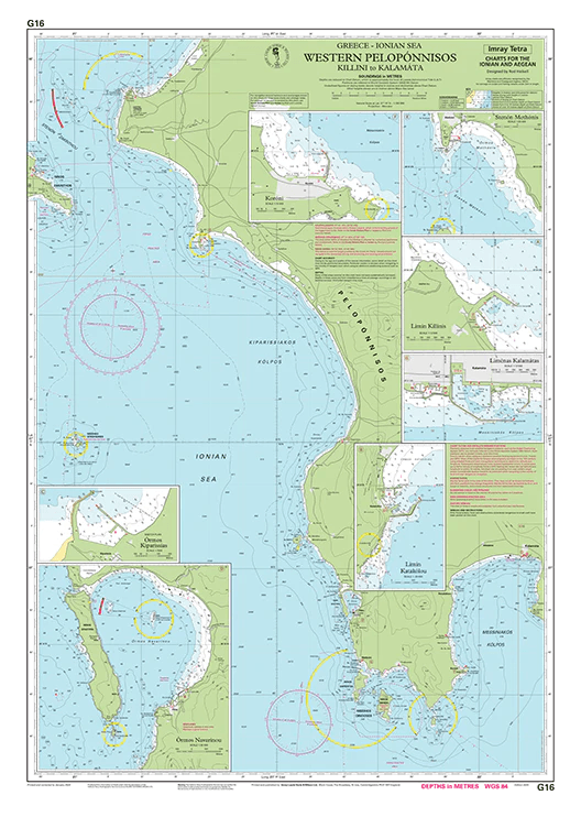 Productomschrijving: De kaarten omvatten Killini, Kalamata, Kiparissia, Pilos, Steno Methonis en Katakolon.