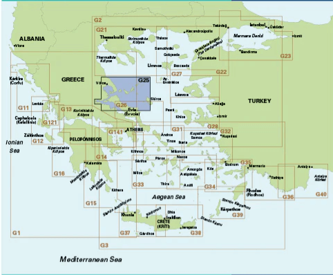 Passage kaart G25 Noordelijke Sporaden en Noord-Évvoia - Imray