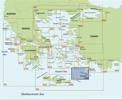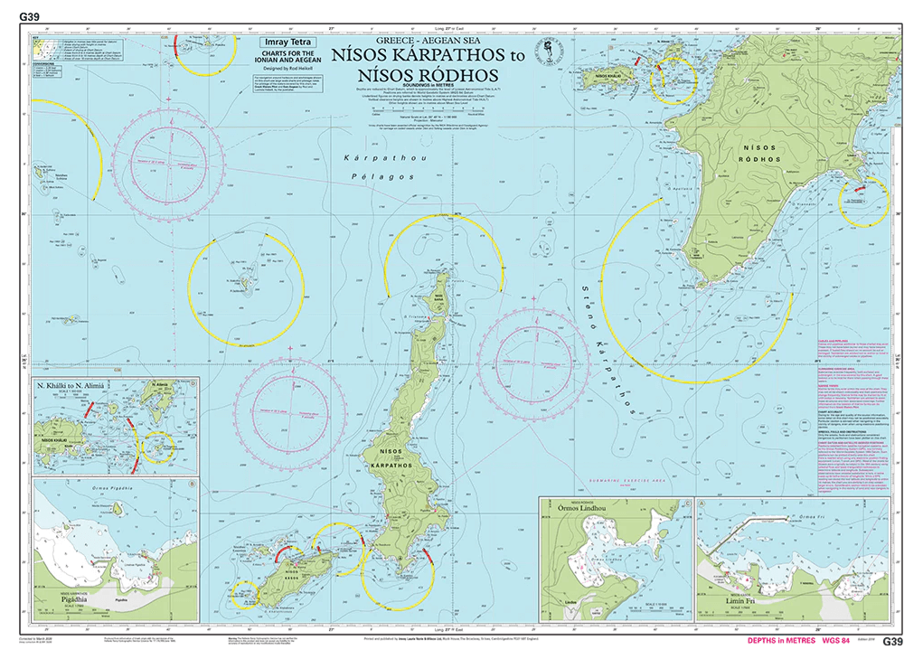 Passage kaart G39 Nísos Kárpathos naar Nísos Ródhos - Imray (F&B)