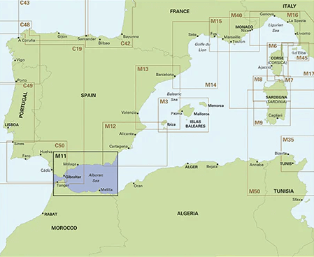 Passage kaart M011 Gibraltar naar Cabo de Gata en Marokko - Imray