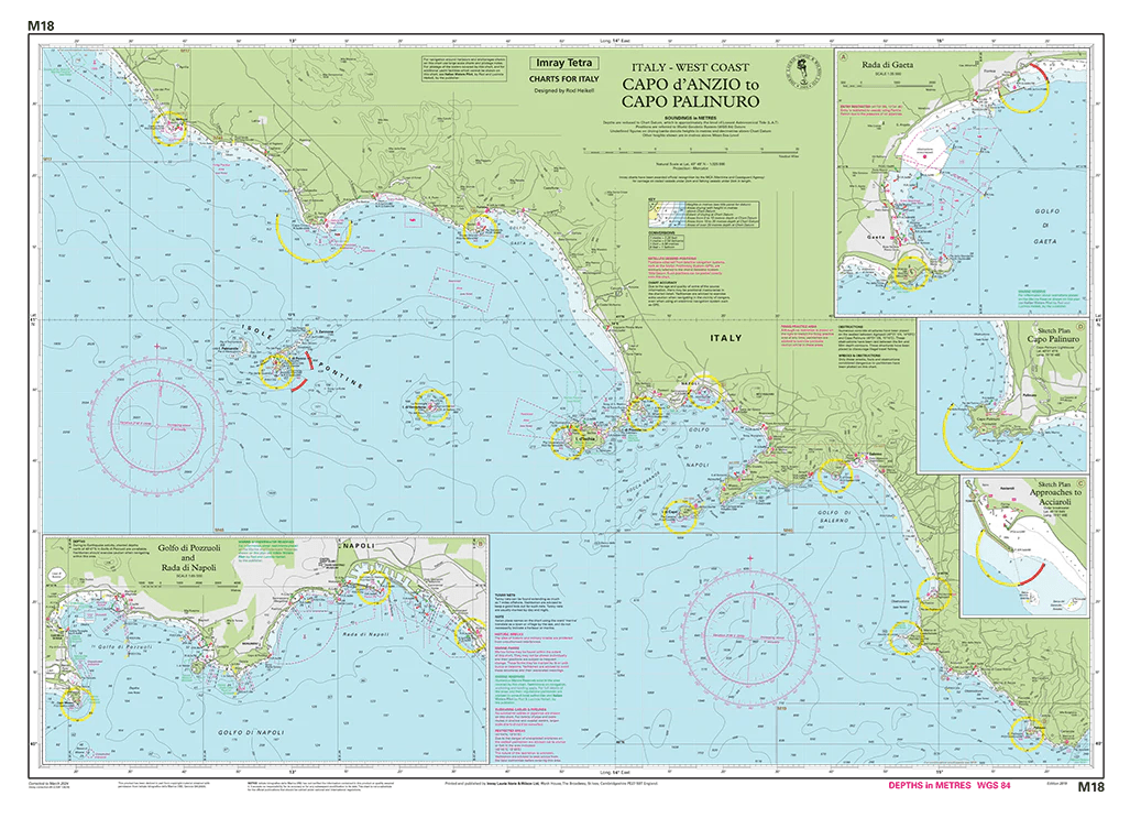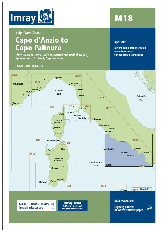 Imray-Iolaire-kaarten voor "Capo d'Anzio to Capo Palinuro" worden algemeen erkend als de beste kaarten voor zeilers. Ze combineren de nieuwste officiële digitale metingen met informatie uit de eerste hand die is verzameld tijdens meer dan 60 jaar onderzoek door Don Street Jr en zijn uitgebreide netwerk van medewerkers. Net als alle Imray-kaarten zijn ze gedrukt op waterbestendig Pretex-papier voor extra duurzaamheid en bevatten ze veel ankerplaatsen, voorzieningen en inhammen die niet op officiële kaarten staan. Deze editie bevat de nieuwste officiële digitale gegevens in combinatie met aanvullende informatie uit het netwerk van Imray, waardoor deze kaart ideaal is voor kleine vaartuigen. De kaart bevat de nieuwste officiële bathymetrische metingen. De kaart is volledig geactualiseerd.