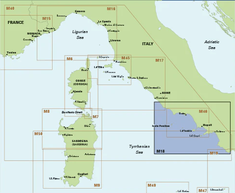 PassagekaartCapo d'Anzio tot Capo Palinuro - Imray (F&B) Productomschrijving: Italië - Westkust Plannen Op schaal 1: 325.000 De Imray Charts M-serie bestrijken het Middellandse Zee geb...