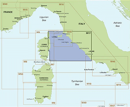 Passage kaart M17 Noord-Toscaanse eilanden tot Rome - Imray (F&B)