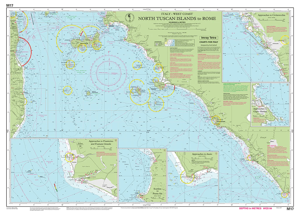 Imray-Iolaire-kaarten voor "North Tuscan Islands to Rome" worden algemeen erkend als de beste kaarten voor zeilers. Ze combineren de nieuwste officiële digitale metingen met informatie uit de eerste hand die is verzameld tijdens meer dan 60 jaar onderzoek door Don Street Jr en zijn uitgebreide netwerk van medewerkers. Net als alle Imray-kaarten zijn ze gedrukt op waterbestendig Pretex-papier voor extra duurzaamheid en bevatten ze veel ankerplaatsen, voorzieningen en inhammen die niet op officiële kaarten staan. Deze editie bevat de nieuwste officiële digitale gegevens in combinatie met aanvullende informatie uit het netwerk van Imray, waardoor deze kaart ideaal is voor kleine vaartuigen. De kaart bevat de nieuwste officiële bathymetrische metingen. De kaart is volledig geactualiseerd.