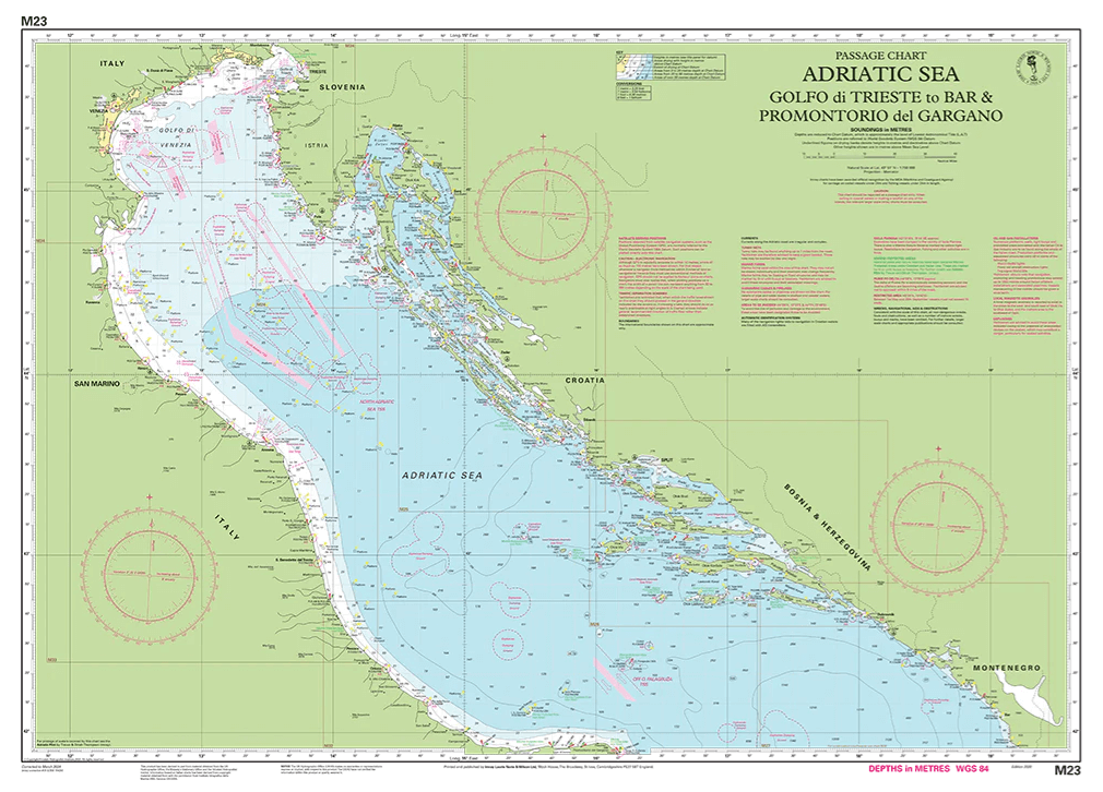 Nieuwe editie die aansluit op de Imray kaarten voor de Adriatische zee (M24, M25, M26, M27)