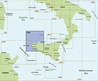 Passage kaart M49 West-Sicilië en Egadische Eilanden - Imray
