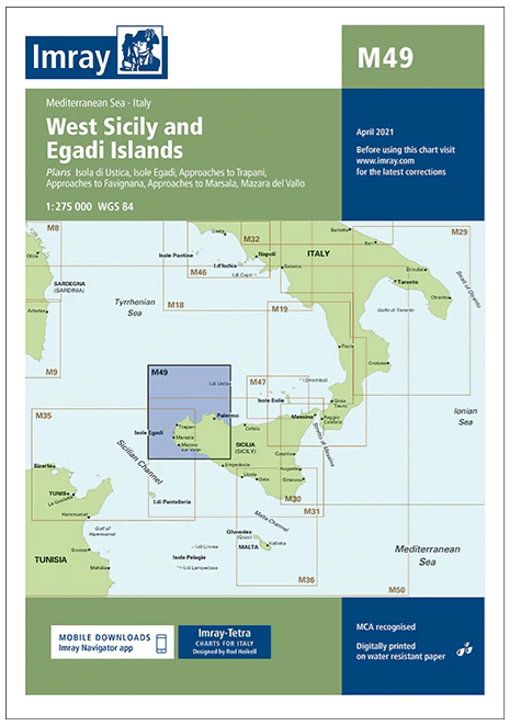 Imray-Iolaire-kaarten voor "West Sicily and Egadi Islands" worden algemeen erkend als de beste kaarten voor zeilers. Ze combineren de nieuwste officiële digitale metingen met informatie uit de eerste hand die is verzameld tijdens meer dan 60 jaar onderzoek door Don Street Jr en zijn uitgebreide netwerk van medewerkers. Net als alle Imray-kaarten zijn ze gedrukt op waterbestendig Pretex-papier voor extra duurzaamheid en bevatten ze veel ankerplaatsen, voorzieningen en inhammen die niet op officiële kaarten staan. Deze editie bevat de nieuwste officiële digitale gegevens in combinatie met aanvullende informatie uit het netwerk van Imray, waardoor deze kaart ideaal is voor kleine vaartuigen. De kaart bevat de nieuwste officiële bathymetrische metingen. De kaart is volledig geactualiseerd.