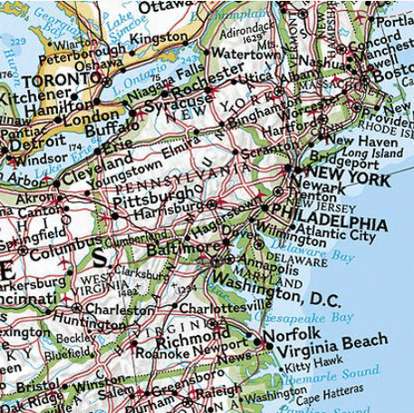 The bright color palette features blue oceans and stunning shaded relief that has been a signature of National Geographic wall maps for over 75 years. Political boundaries are clearly defined, and place names, airports, major roadways, and other geographical features are easy to read. In addition to Canada, the United States, Mexico, and Central America, coverage includes Iceland, Greenland, the island nations of the Caribbean, Venezuela, and most of Colombia.