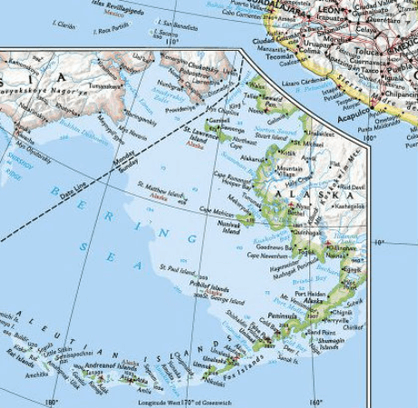 An inset map shows the Aleutian Islands off the coast of Alaska.