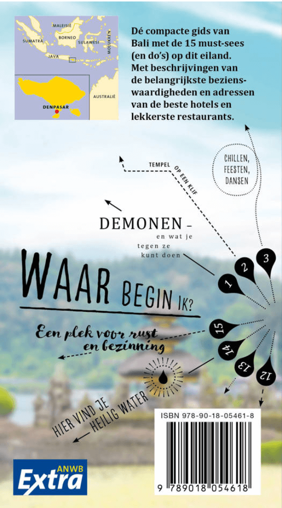 Bali, een van de ongeveer 17.500 (!) eilanden van de Indonesische archipel behoort tot een van de beroemdste ter wereld. Dat komt vooral door zijn paradijselijke uiterlijk. Je raakt gefascineerd door religieuze rituelen, de vrolijke tempelfeesten en indrukwekkende landschappen. De ANWB Extra reisgids Bali biedt naast diverse wandelroutes en veel praktische tips over hotels en de cultuur ook 15 inspirerende bezienswaardigheden die je niet mag missen. Leer alles over de inwoners in het Bali museum, bezoek de Pura Taman Ayun tempel of beklim de Baturvulkaan.