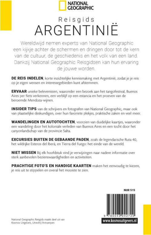 Reisgids Argentinië - Kosmos Productomschrijving: National Geographic Reisgids Argentinië is een exclusieve gids met sublieme fotografie die u meeneemt naar de bekende en minder bekende bezi...
