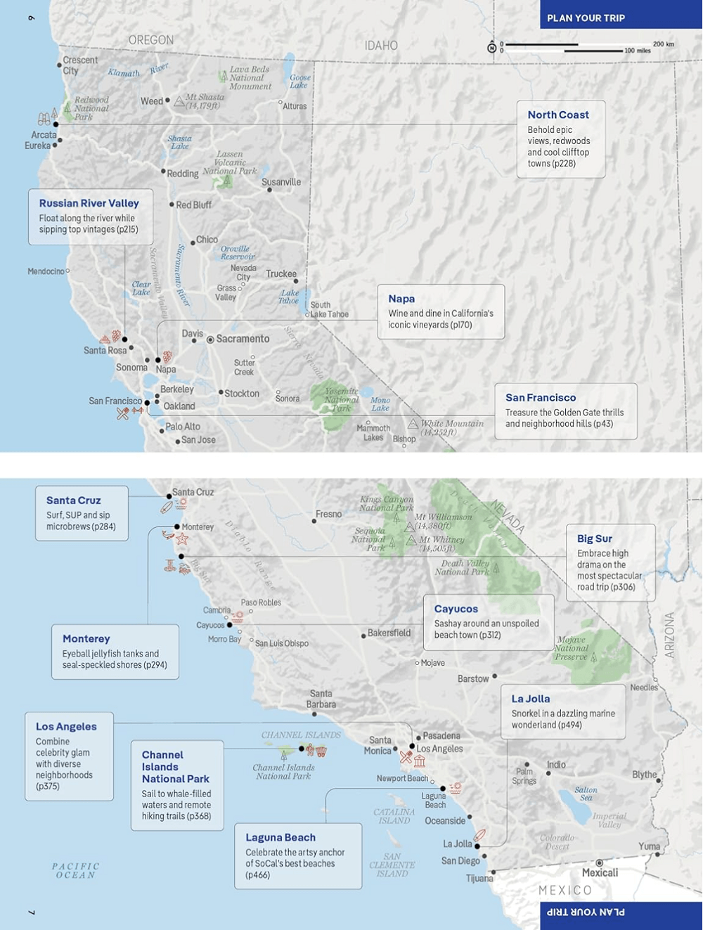 Covers: San Francisco, Marin County, Bay Area, San Jose, Napa Valley, Sonoma Valley, Coastal Highway 1, Redwood Coast, Santa Barbara, Los Angeles, Disneyland, Anaheim, San Diego and more