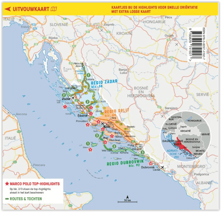 Productomschrijving: Marco Polo reisgids voor Dalmatië! Handig pocket formaat, boordevol informatie, met uitneembare kaart achter in het boek en 4 bladzijden met plattegronden.