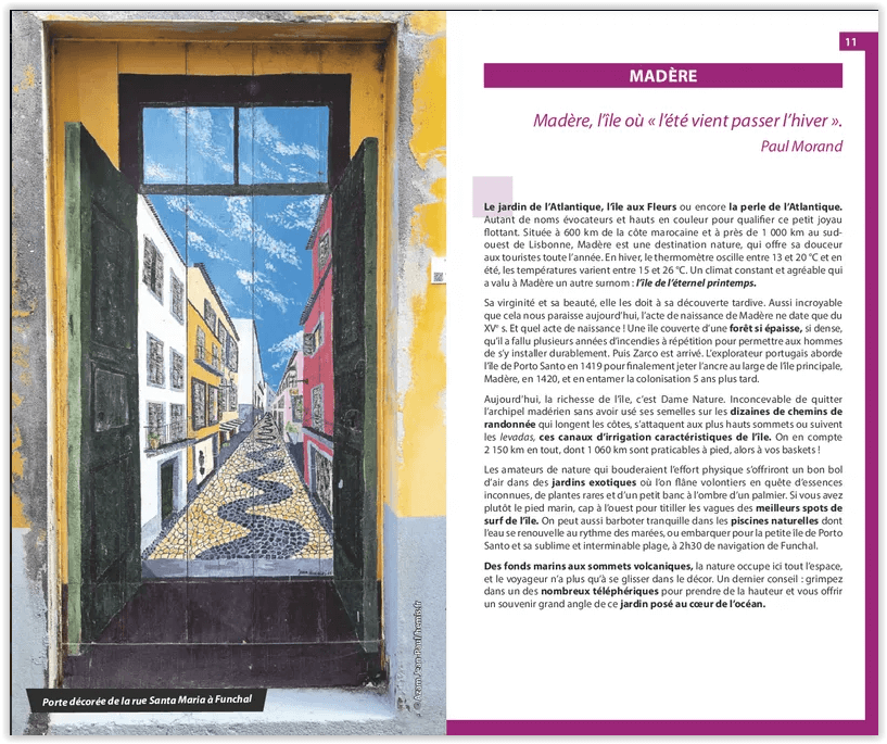 Au delà des vagues s’ancre le reste de l’archipel : la petite Porto Santo, réputée pour sa longue plage de sable clair. La vie y est aussi douce que l’air ! Vous trouverez dans le routard Madère : une première partie haute en couleur avec des cartes et des photos, pour repérer plus facilement le pays dans son ensemble et nos coups de cœur ; des adresses souvent introuvables ailleurs ; des visites culturelles originales en dehors des sentiers battus ; des infos remises à jour chaque année puis des cartes et plans détaillés.