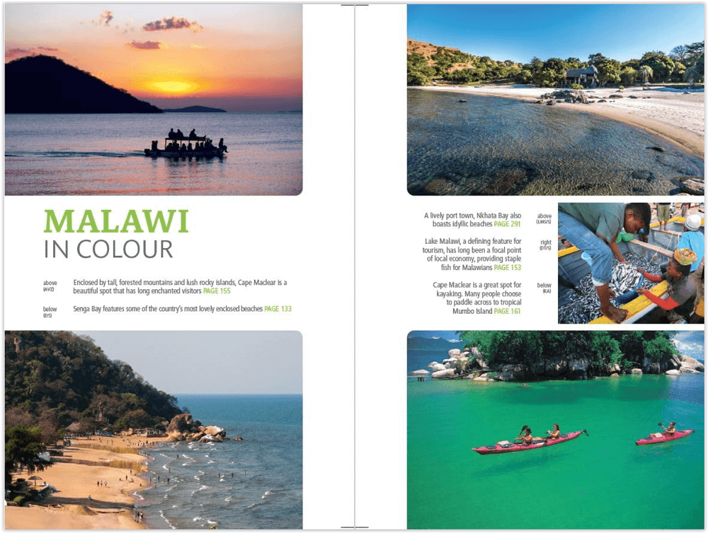 The guide takes you from the northern Nyika Plateau with its zebra herds to the long lake shore and the easy charm of baobab-studded Likoma Island. Heading south, you come to the capital Lilongwe and nearby Cape Maclear, a low-key resort town with excellent diving and snorkelling. From here you can travel to Liwonde National Park, famed for its abundant elephant and hippo, and the historic town of Zomba, whose high plateau is criss-crossed by hiking trails. Heading south again brings you to Mount Mulanje, the country’s highest peak at 3,002m.