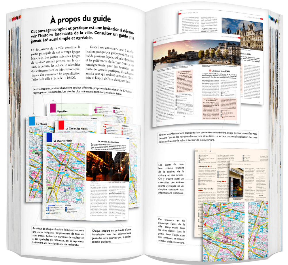 128 best places to visit arranged into 15 walking tours. From the famous Notre-Dame Cathedral, through mysterious corridors of the Louvre to the Pompidou avant-garde art centre. Picturesque streets of Montmartre, the Champs-Élysées and green boxes of bouquinistes along the Seine.