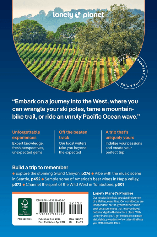 Covers: California, Los Angeles, San Francisco, Pacific Northwest, Washington, Oregon, Rocky Mountains, Colorado, Southwest, Las Vegas, Arizona and more The Perfect Choice: Lonely Planet Western USA, our most comprehensive guide to Western USA, is perfect for both exploring top sights and taking roads less traveled.