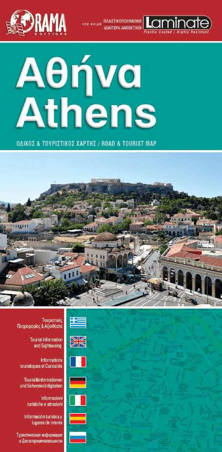 standaard versieStadskaart Athene - Orama Editions Productomshrijving: Gedetaillieerde stadskaart en plattegrond van de stad Athene in Centraal Griekenland. De kaart omvat hotels en campings, met toeristische symbolen die allerhande historische plaatsen, kloosters, museas aangeven. De kaart is meertalig, met belangrijke steden met hun centrum kaart en register, en degelijk kleurengebruik. Ook hoogteve…
