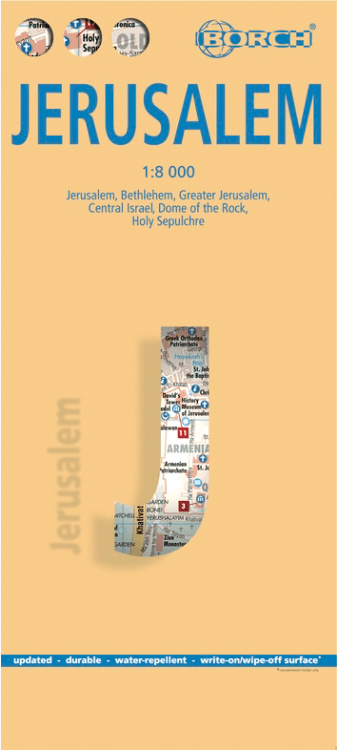 Wandelkaart Jeruzalem Israèl - Borch Productomschrijving: Our soft-laminated folded map of Jerusalem in the 7th edition shows: Jerusalem 1:8 000, Bethlehem 1:11 000, Greater Jerusalem 1:30 0...