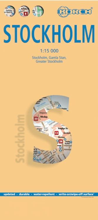 Wandelkaart Stockholm Sweden - Borch Productomschrijving: Our soft-laminated folded map of Stockholm in the 2nd edition shows: Stockholm 1:15 000, Gamla Stan 1:7 500, Greater Stockholm 1:100...