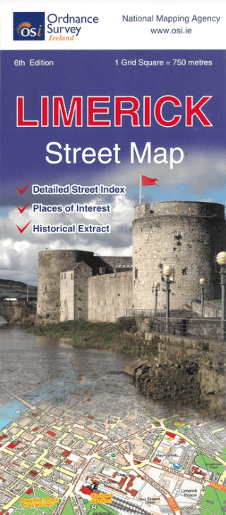 Stadskaart Limerick city Ireland - OSI Productomschrijving: Limerick Street Map at a scale of 1:13,000 Large Fold Out Street map including street names and index.