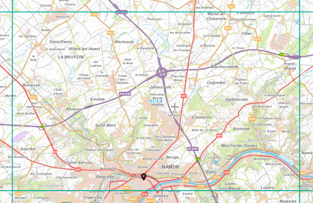 De regio omvat ondermeer: Warichèt, Bawati, les Splinées, Saint-Denis, la Spaumerie, Villers-lez-Heest, La Bruyère, Les Ladries, la Gloriette, Trieux de Frène, Bvesse, l'Eau bleue, Emines, Rhisnes, Bois des Broux, Bois de Ban, Livot, Suarlée, les Comognes, Saint-Servais, Belgrade (belgique), Namur, Parc du Transvaal, le Transvaal, le Val Vert, Bouge, Moulin a Vent, Frizet, Saint-Marc, Vedrin, Daussoulx, le Hazoir, Warisoulx, Petit Sart, la Respaille, Btuyères les Broscallies, Trieu aux Mines, Waret-la-Chaussee, Tillier, le Troux, Marchovelette, Franc-Waret, Cognelée, Gelbresse, Boninne, Marche-les-Dames.