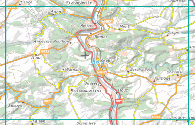 Wandelkaart Yvoir - NGI Productomschrijving: Deze omvat een wandelkaart met schaal 1:25.000. De kaart van Yvoir spreekt voor zich. Omvat: Sosoye, Bioul, Annevoie-Rouillon, Rivière, Arbre...