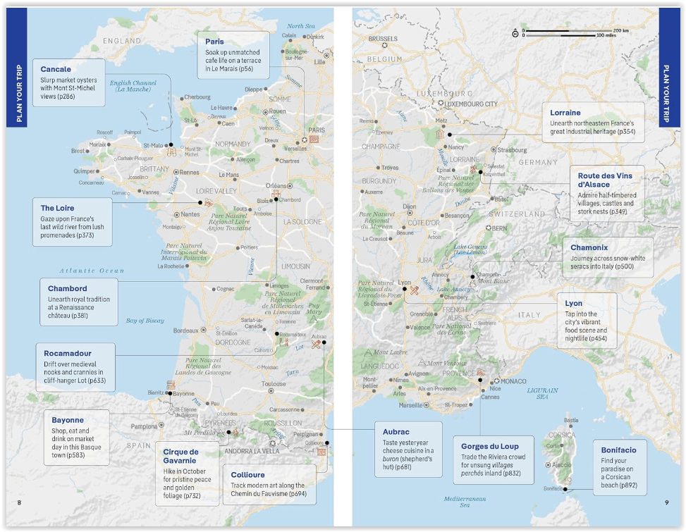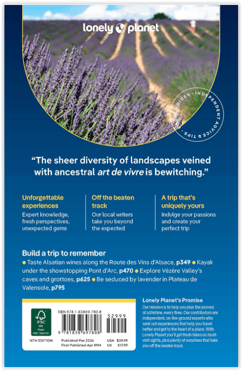 Covers: Paris, Lille, Flanders, the Somme, Normandy, Brittany, Champagne, Alsace, Lorraine, the Loire Valley, Burgundy, Lyon, the French Alps, Basque Country, the Pyrenees, Languedoc-Roussillon, Provence, Corsica and more