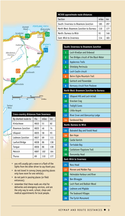 - Driving distances around the North Coast 500, plus cross-country distances from Inverness for leaving or rejoining the North Coast 500